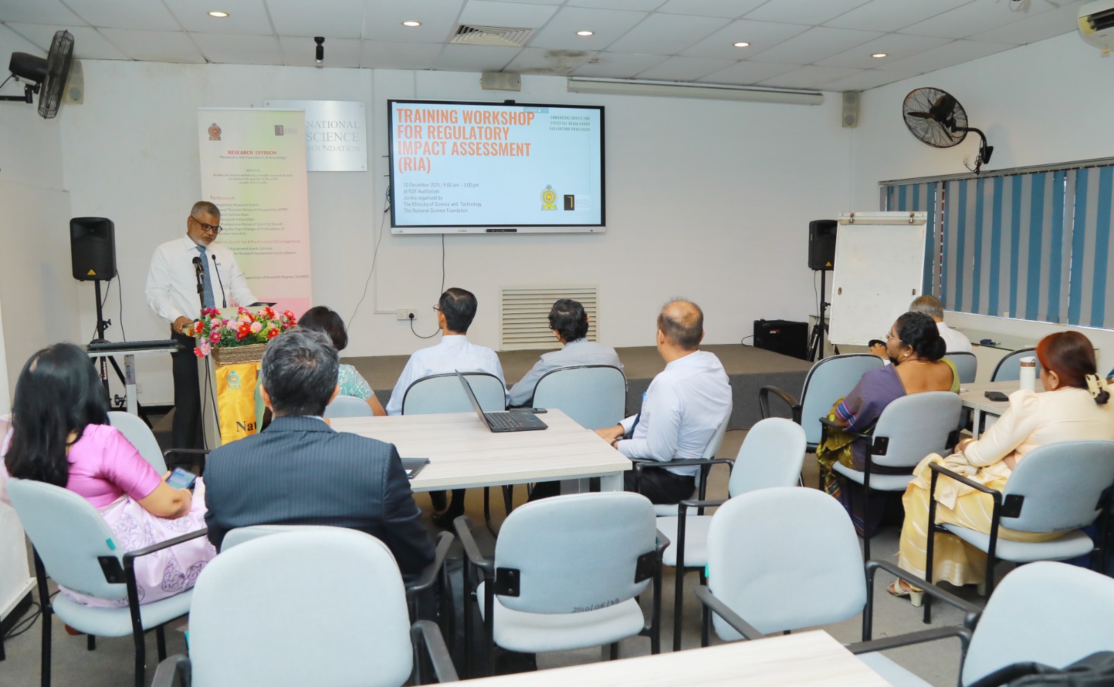 A Training Workshop on Regulatory Impact Assessment (RIA) Proceedings Publication and Editorial Processes: Strengthening Quality, Rigor, and Standards was successfully conducted by the Event Management Division of the NSF jointly with the Planning Division of the Ministry of Science and Technology which was held on 10 December 2025 at the NSF Auditorium.as a full day workshop. The event was graced by Mr. Y. L. Mohamed Navavi, the Secretary to the Ministry of Science and Technology, Dr. Sudath Samaraweera, the Chairman and Dr. Sepalika Sudasinghe, Director General of the National Science Foundation.