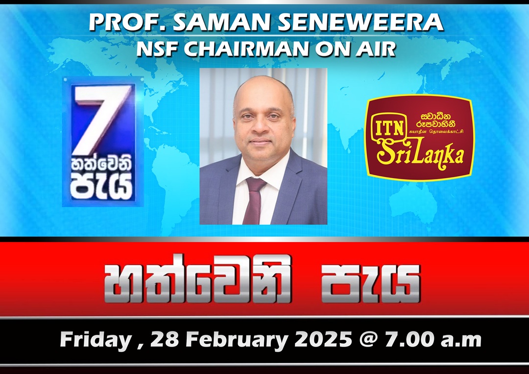 Prof. Saman Seneweera, Chairman, NSF will be participating at the "Hathweni Peya" TV programme on ITN Sri Lanka Friday, 28 February 2025 at 7.00 am